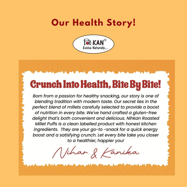 • No Additives, No preservatives, 100% Millets: Enjoy Nihkan  Millet Kurmura Mix made without any additives, no corn, no rice , no starches. They are an excellent choice for health-conscious consumers seeking a guilt-free snacking option.