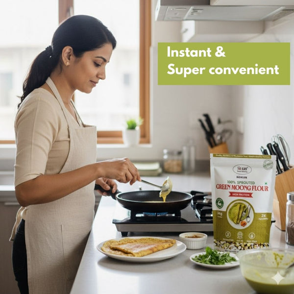 • Easy Breakfast Mix or Quick light dinner snack: Nihkan brings sprouted protein flour in your every morning yummy breakfast as instant cheela or dosa and makes your breakfast healthier. Ready in just 5 minutes, saves your time of sprouting & milling the flour to make batter.